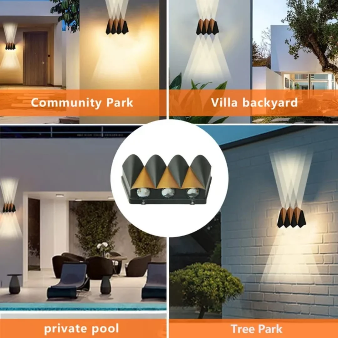 Illuminate your outdoor space with sophistication and style using our LED Outdoor Black Gold Wall Gate Lamps. Crafted to add a touch of elegance to your exteriors, these wall lights boast a sleek black and gold finish that seamlessly blends with any outdoor décor. Designed to withstand the elements, these wall lamps are waterproof, ensuring longevity and durability even in harsh weather conditions. Emitting a warm white light, they create a welcoming ambiance while providing ample illumination for your outdoor areas. With an up and down lighting design, these LED wall lamps offer versatile lighting options, ideal for highlighting architectural features, enhancing security, or simply illuminating pathways. Whether you're sprucing up your garden, patio, or entrance, these outdoor wall lights are the perfect combination of functionality and aesthetics. Elevate your outdoor living experience and add a touch of sophistication to your home exterior with our LED Outdoor Black Gold Wall Gate Lamps.