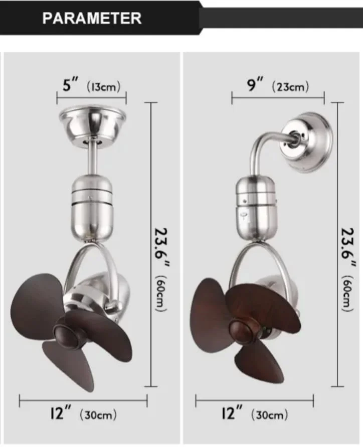 - Elegant Design: Features a durable black metal body with 3 brown ABS blades disguised as wooden crafted blades.