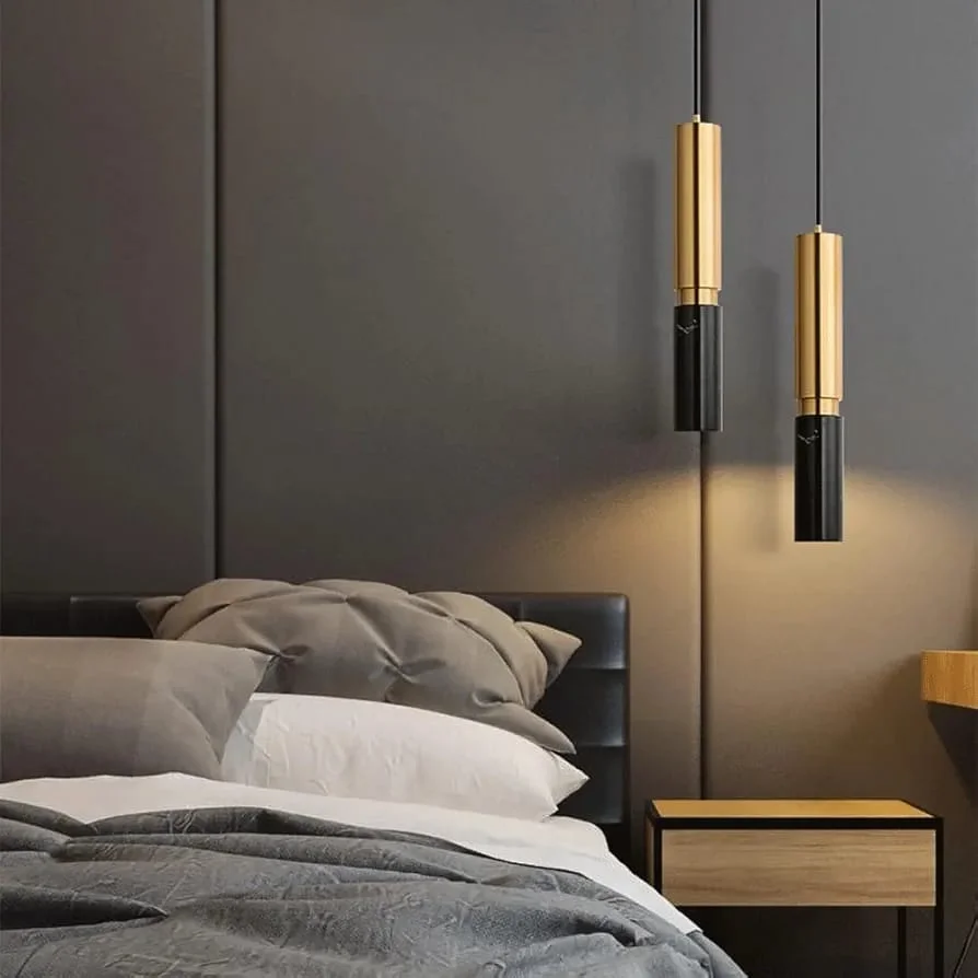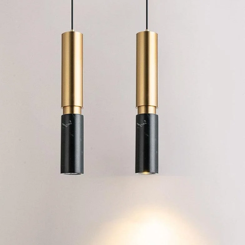 Smith Pendant Golden Metal Black Marble Cylindrical Hanging Light - Warm White (12, Watts)