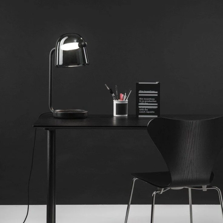Smoky Glass Shade Black Base Desk Lamp Table Lamp - Tricolour