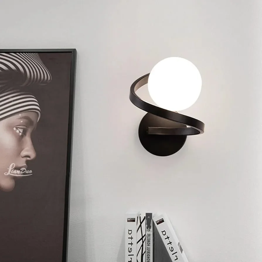 Spindel Wall Lamp Spiral Round Frosted Glass Ball Wall Lamp - Tricolour (Black)