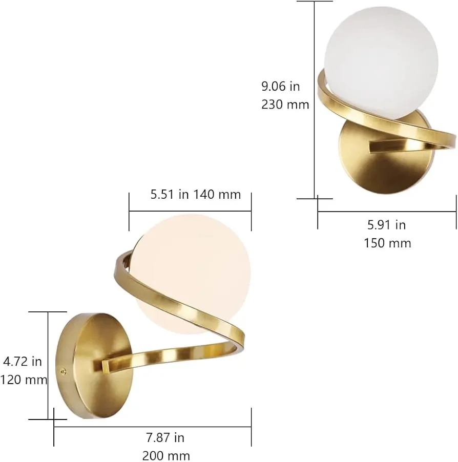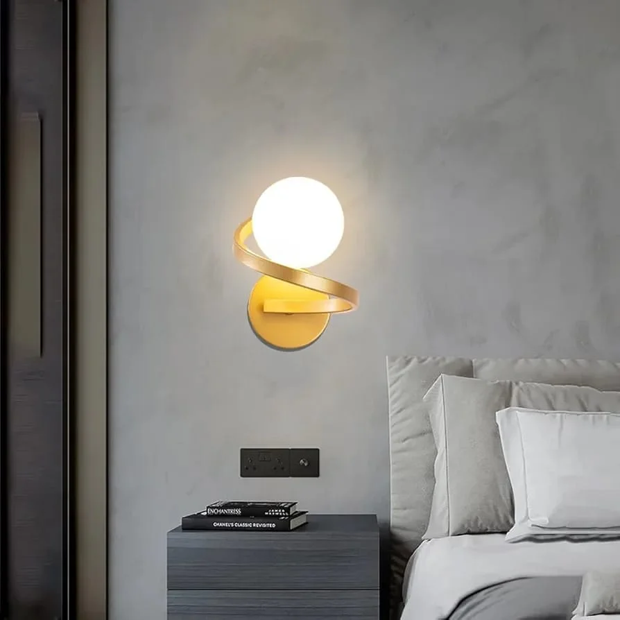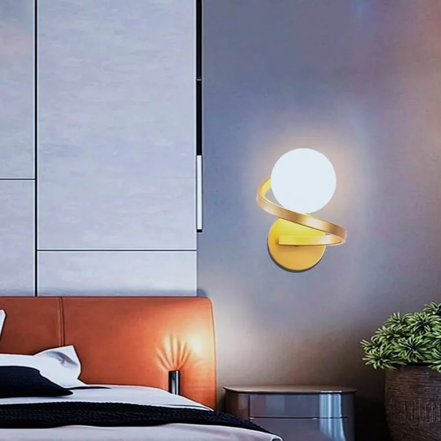 Spindel Wall Lamp Spiral Round Frosted Glass Ball Wall Light - Tricolour (Electroplated Gold)