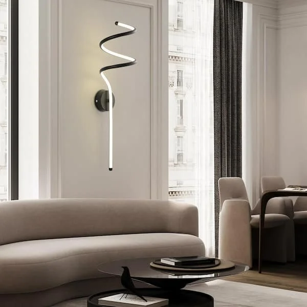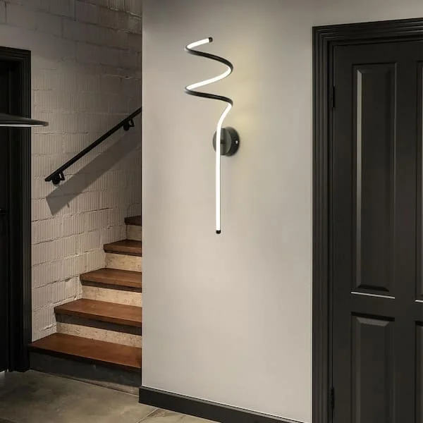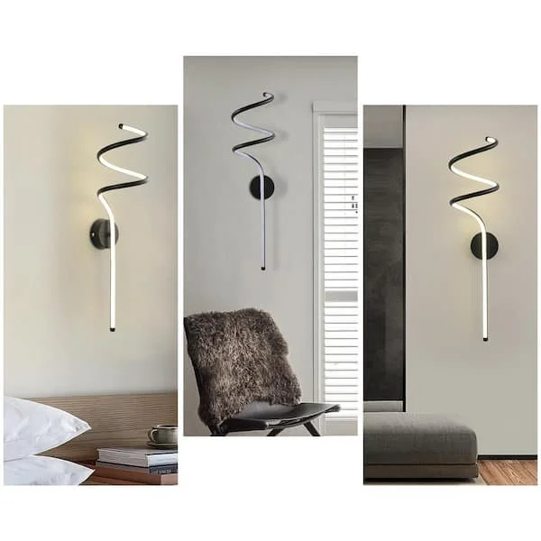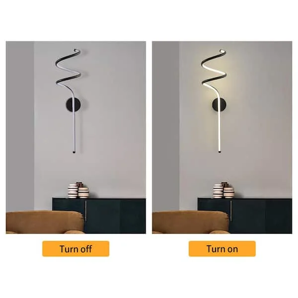 - Illuminate your space with elegance: LED Acrylic Spiral Black Metal Wall Light.