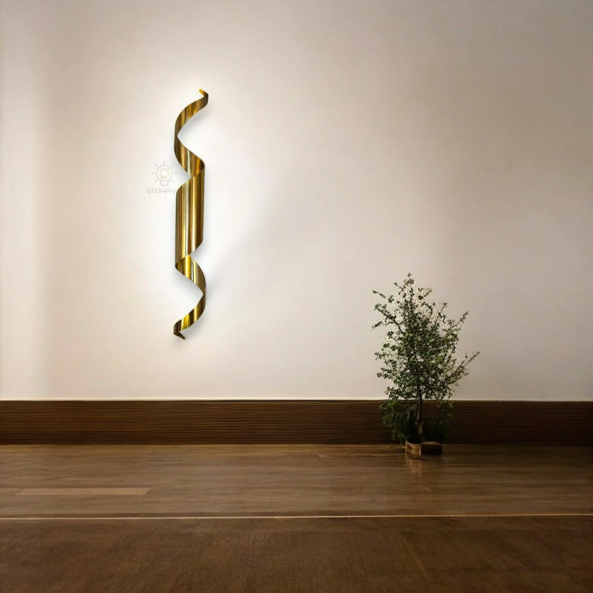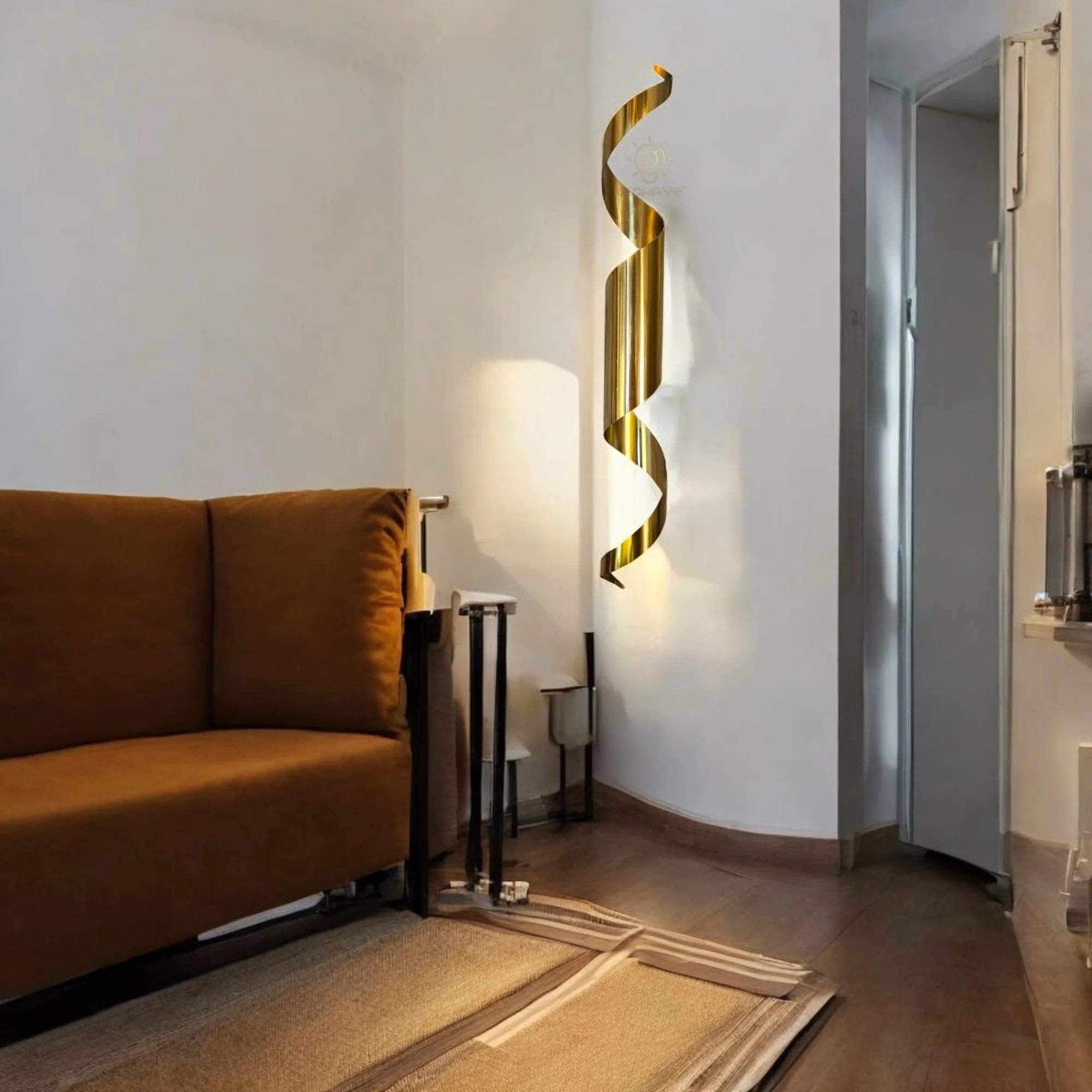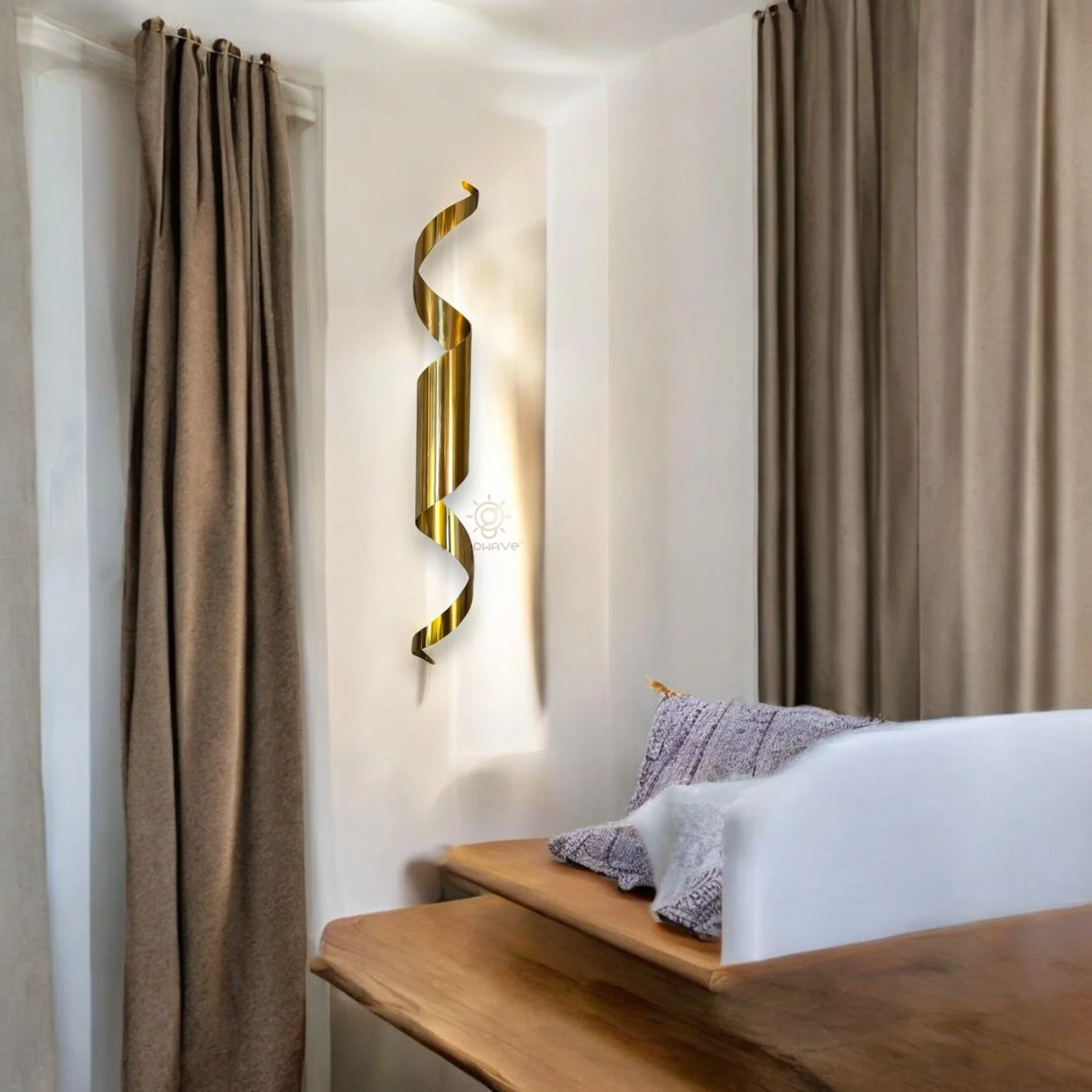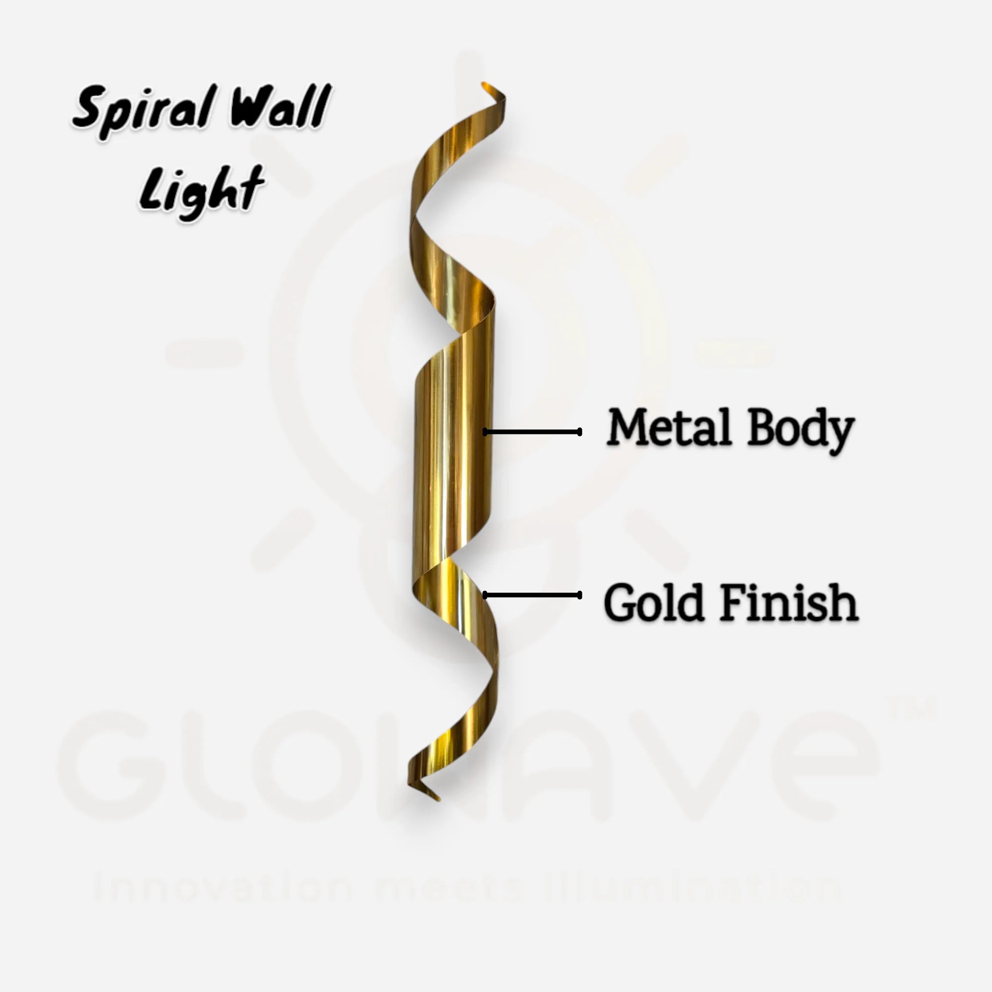 - Illuminate your space with elegance: LED Acrylic Spiral Golden Metal Wall Light.