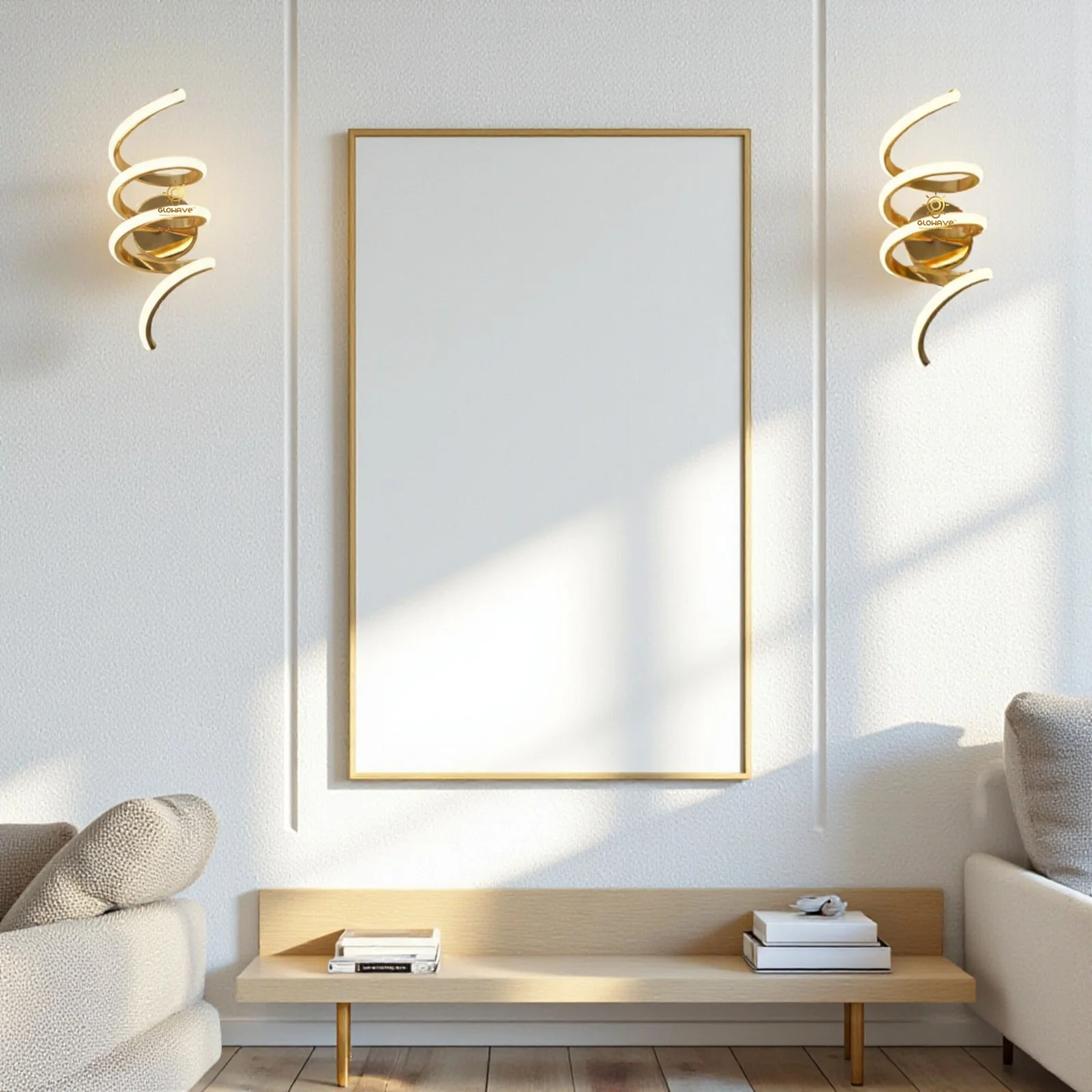 "Elevate your space with our 350MM Modern Long Gold Spiral LED Wall Lamp. Emitting three colour light glow, its sleek design adds a touch of luxury to any room. Versatile and efficient, perfect for ambient or task lighting in living rooms, bedrooms, or offices."