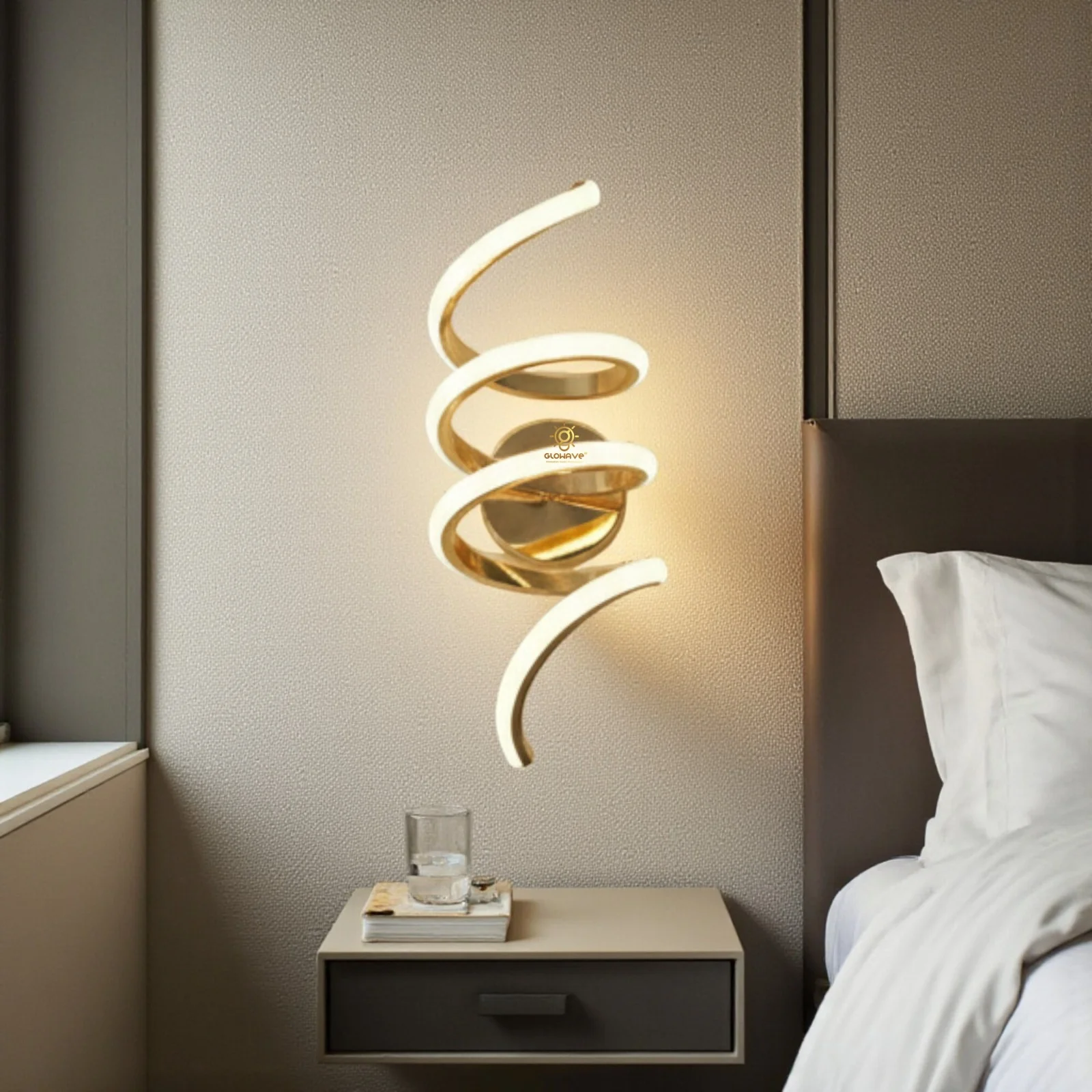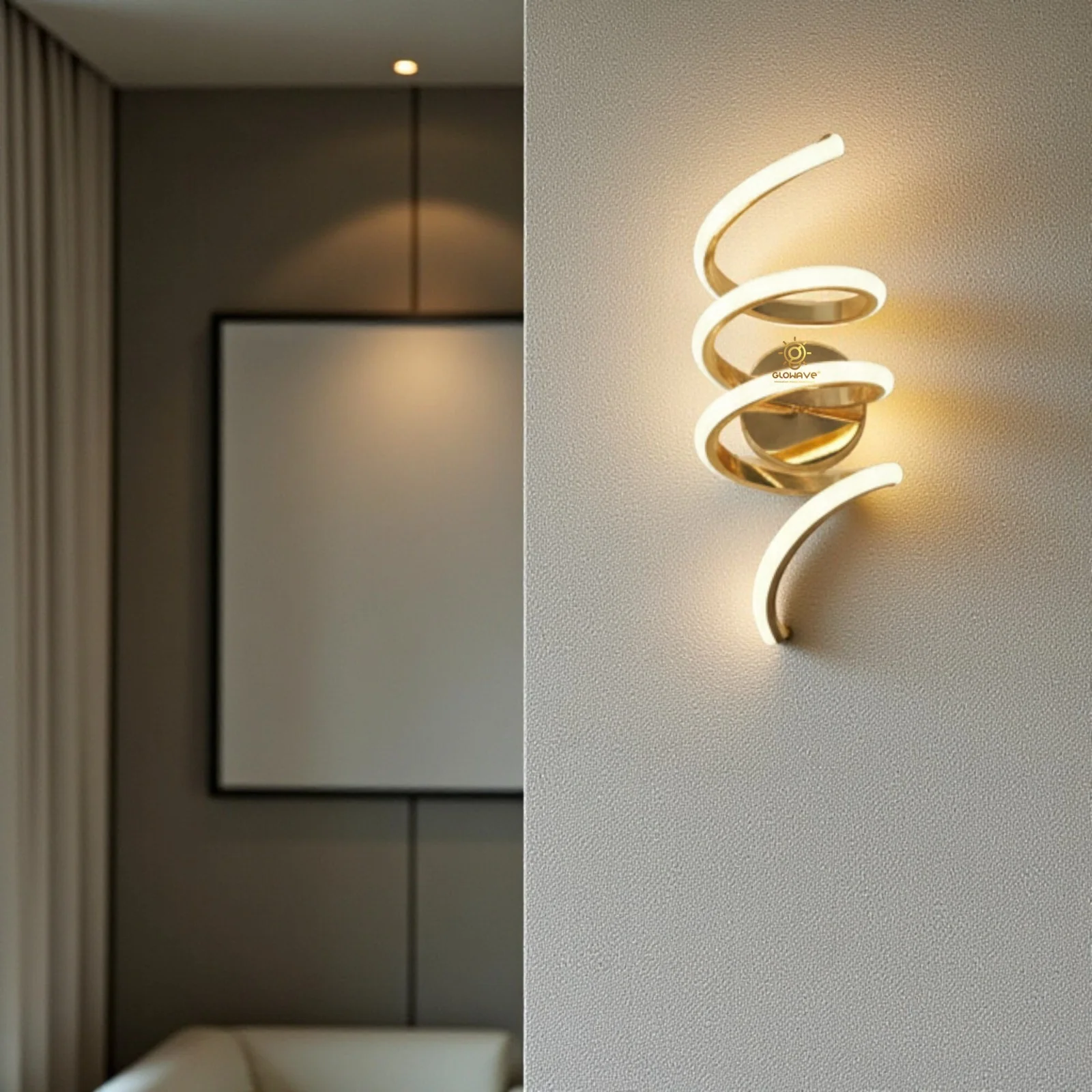 - Illuminate your space with elegance: LED Acrylic Spiral Golden Metal Wall Light.