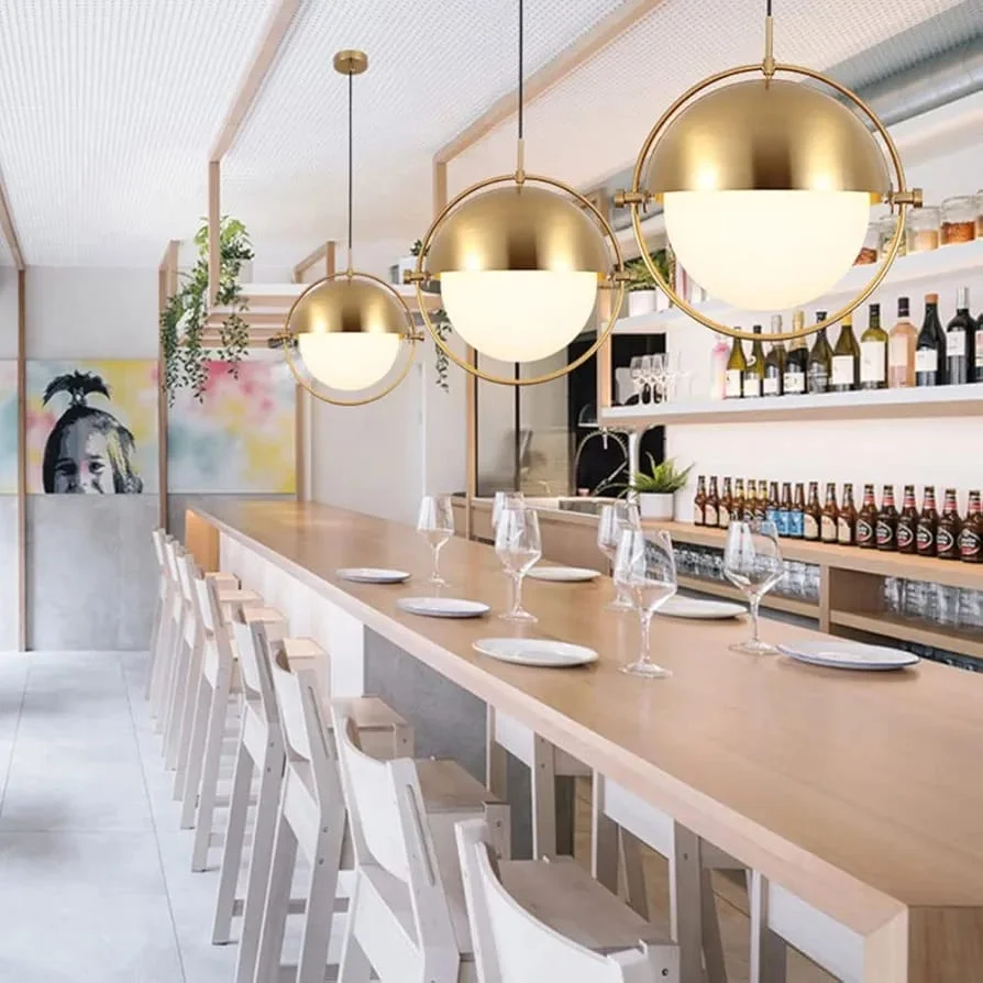 Stellar Sphere Pendant Frosted Glass Ball Bedside Golden Hanging Light - Warm White