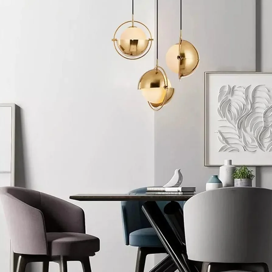European Golden Smoky Glass Set of 3 Pendant Hanging Light - Warm White