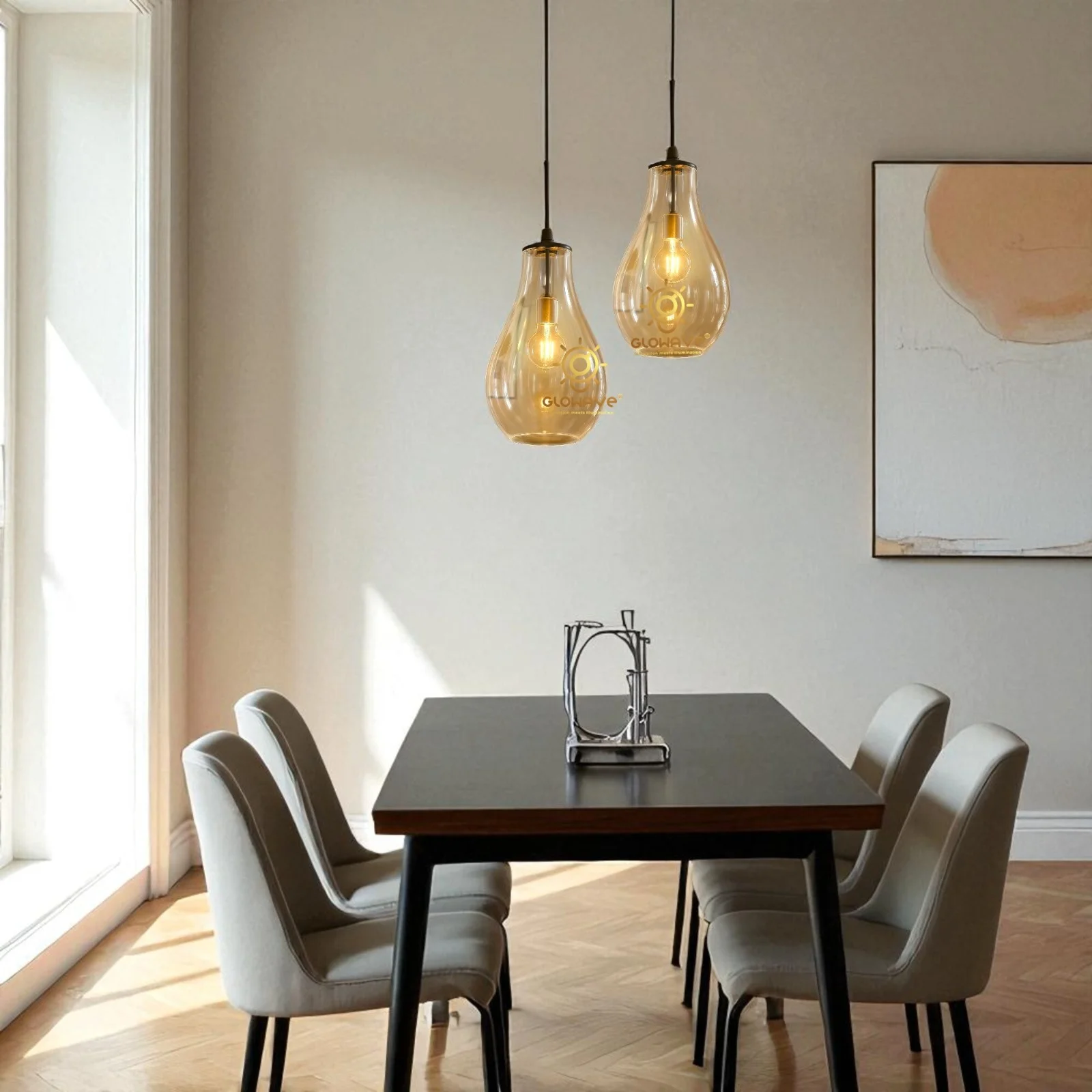 European Golden Smoky Glass Set of 3 Pendant Hanging Light - Warm White