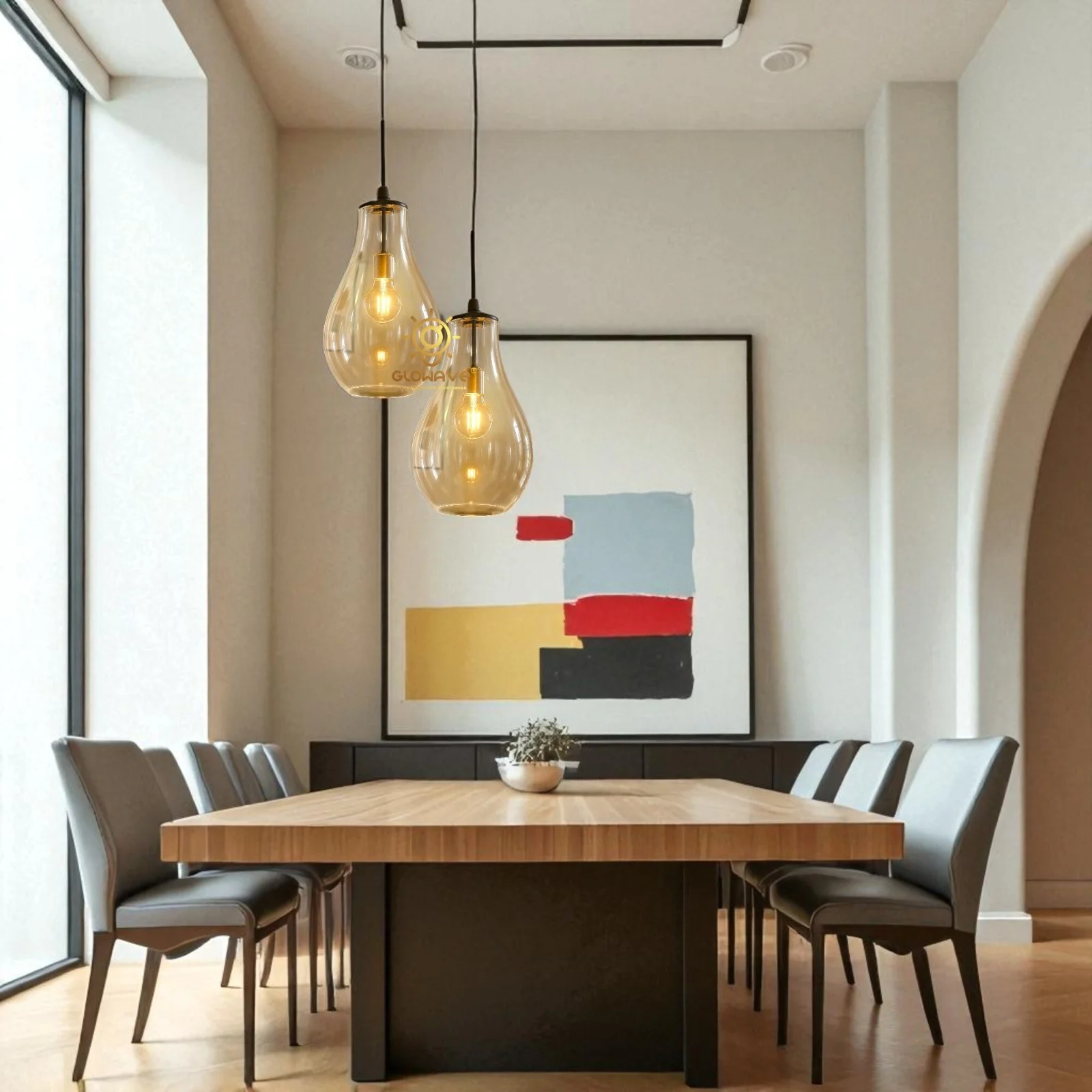 - Stunning LED Circular Shape Amber Glass Light Gold design