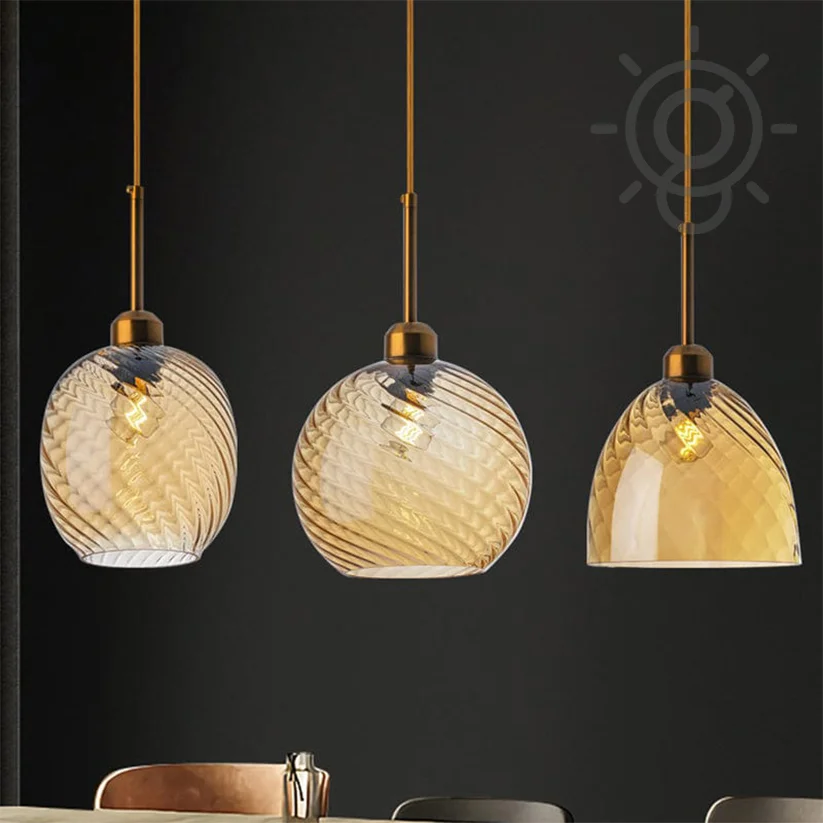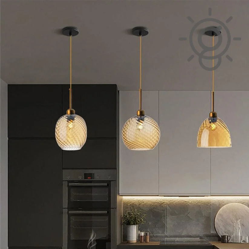 Stylish LED Amber Glass Pendant Hanging Light Ceiling Lamp - Warm White