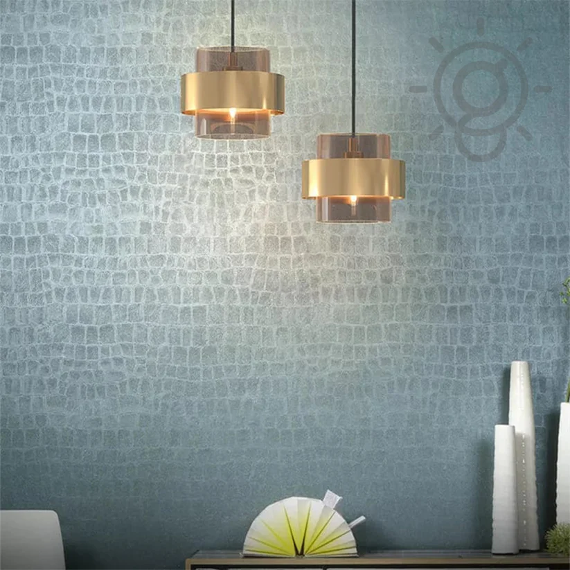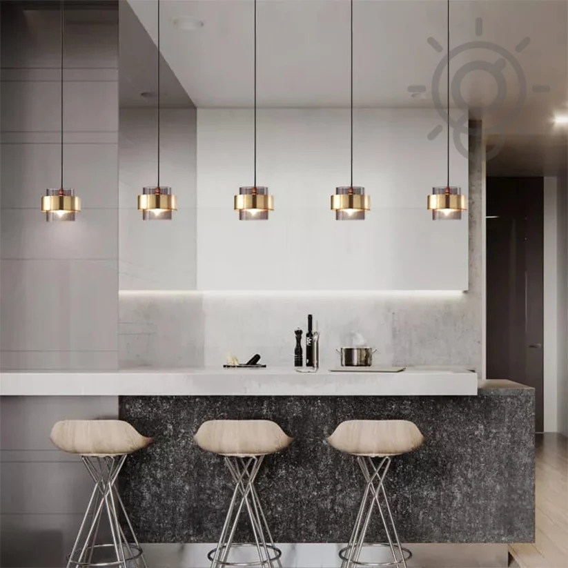 European Golden Smoky Glass Set of 3 Pendant Hanging Light - Warm White
