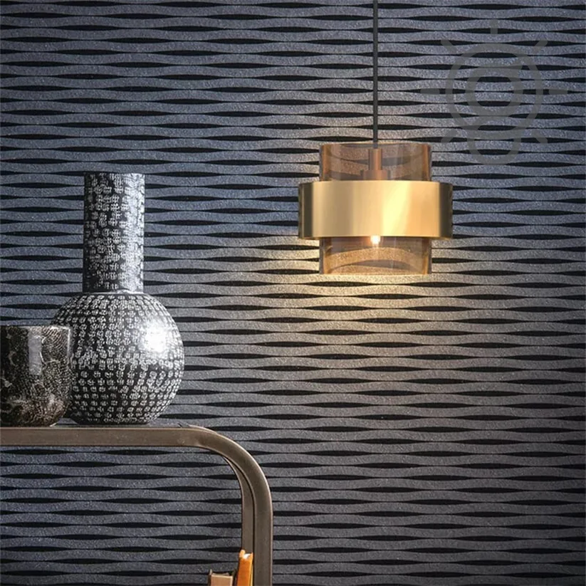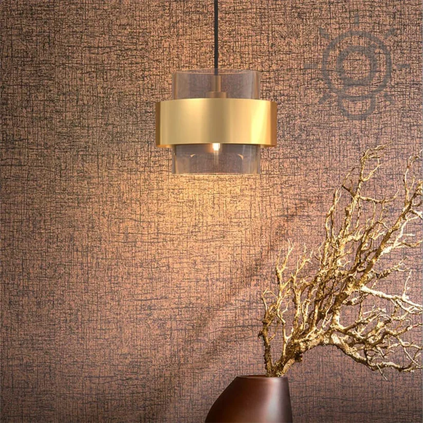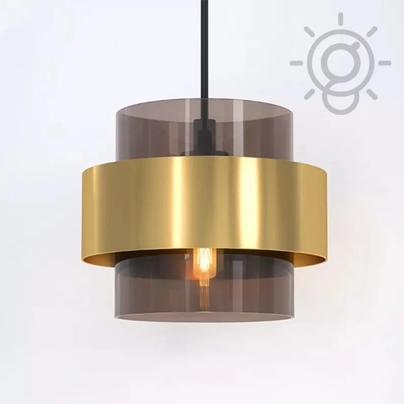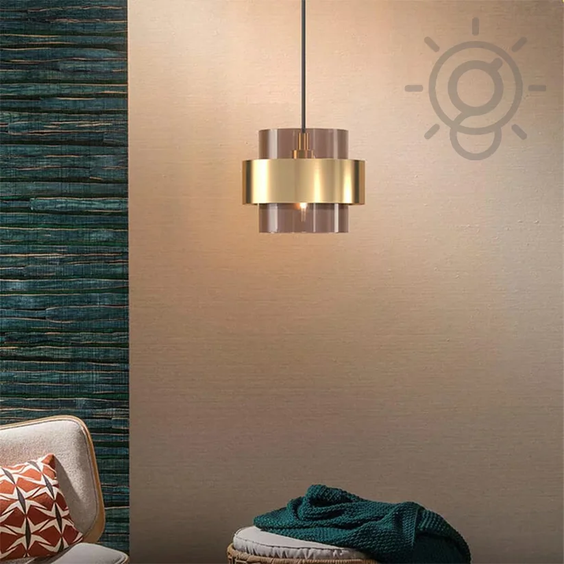 Stylish LED Pendant Light Gold Finish Metal Round Smoky Glass Bedside Hanging Lamp - Warm White
