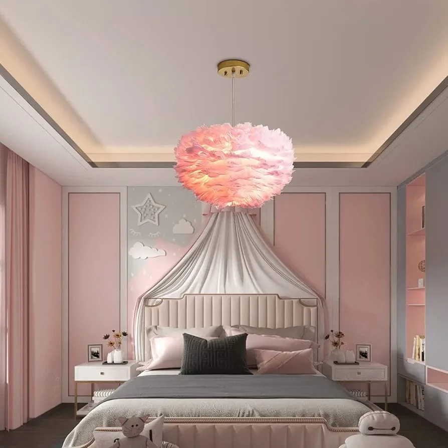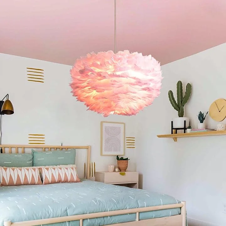 - ✨ Elegant Feather Design – Soft Pink feather shade brings a luxurious and delicate look to your room.