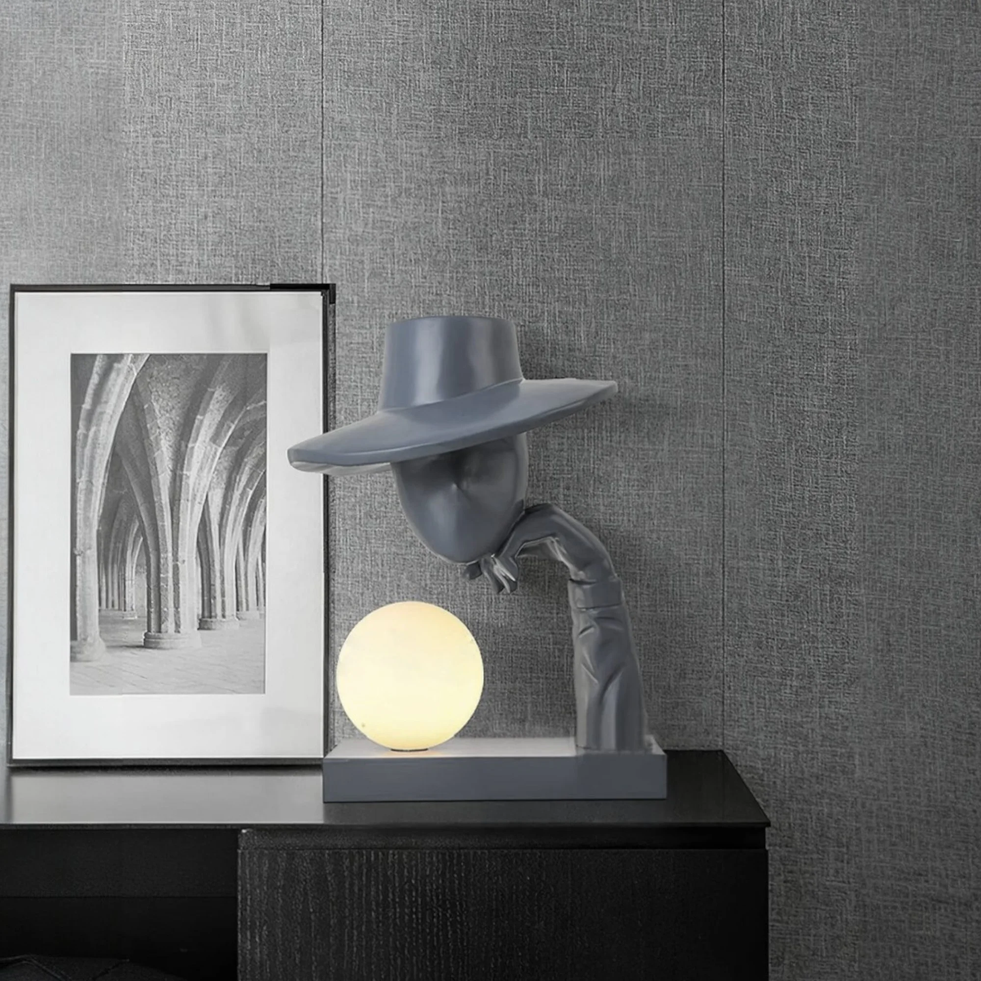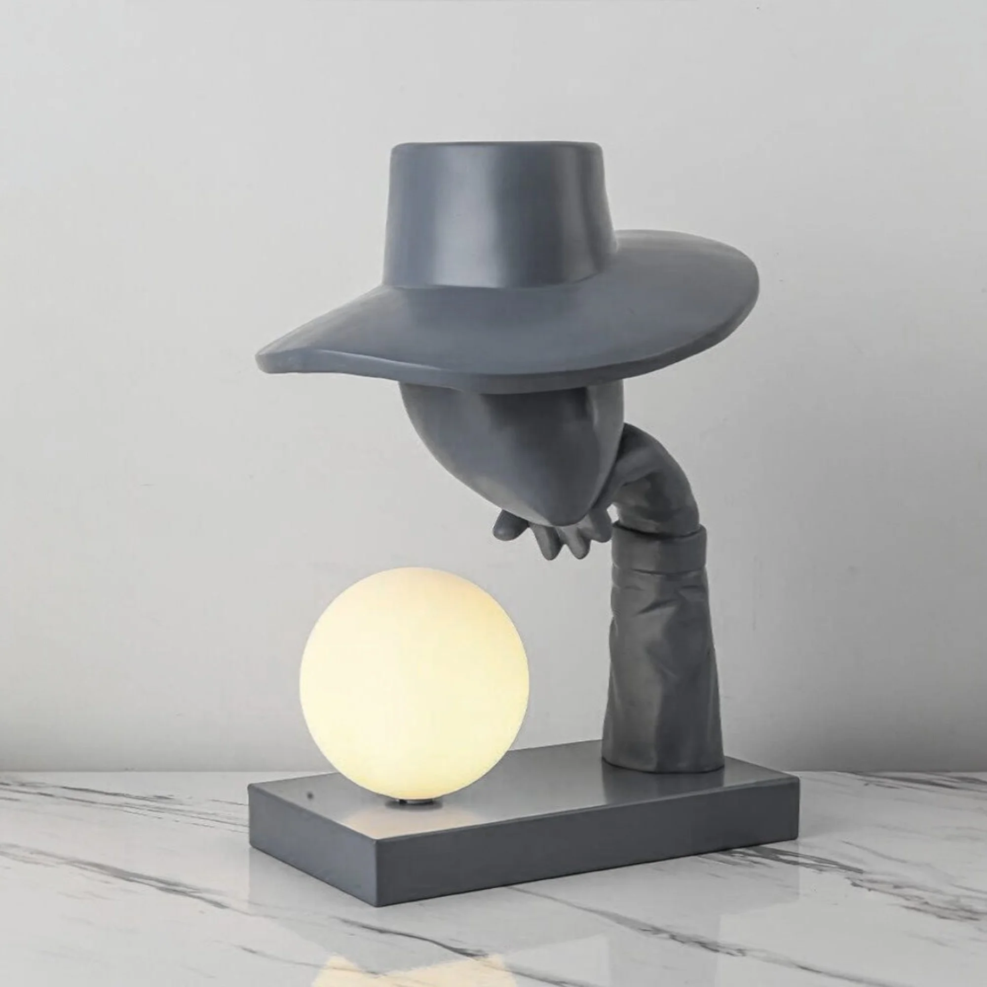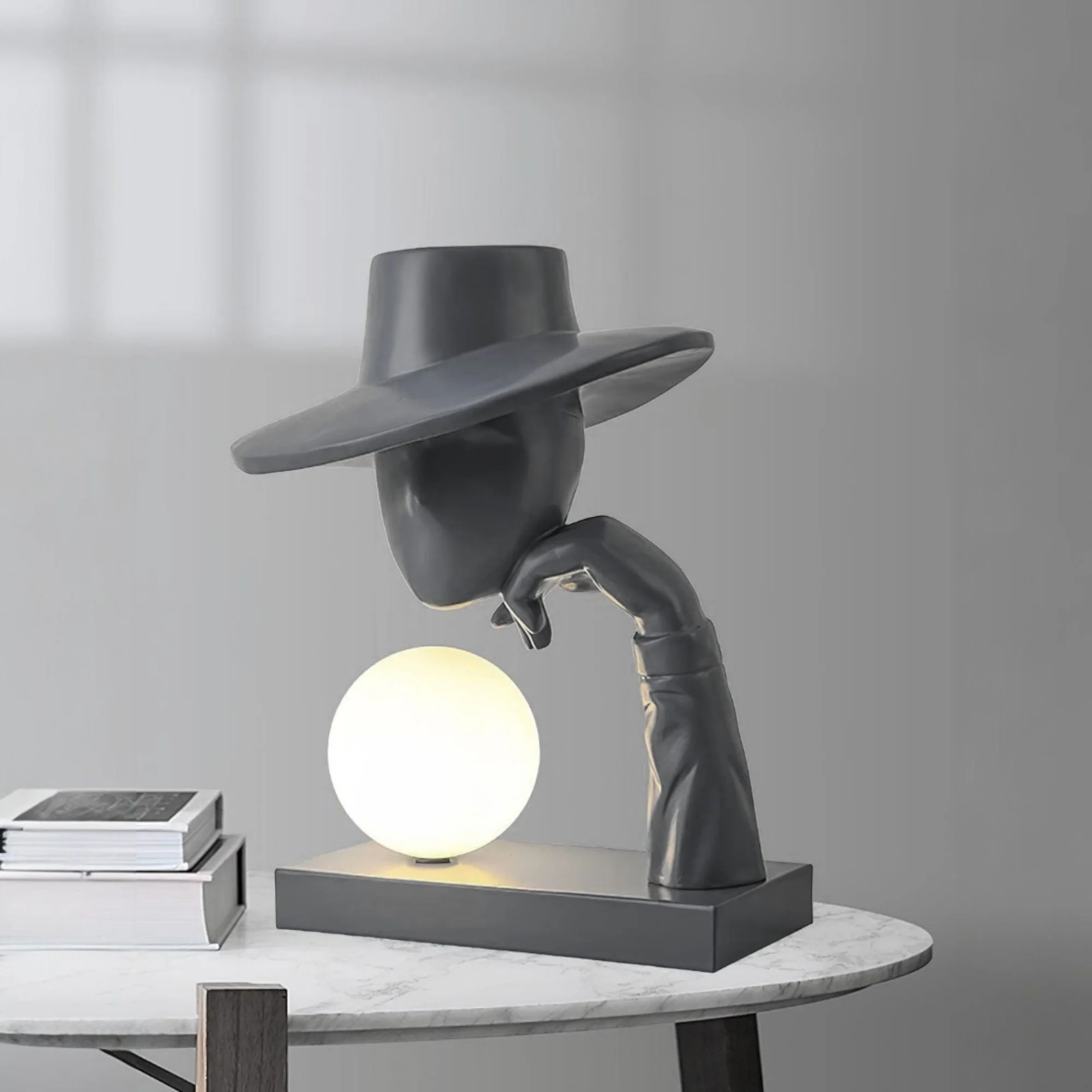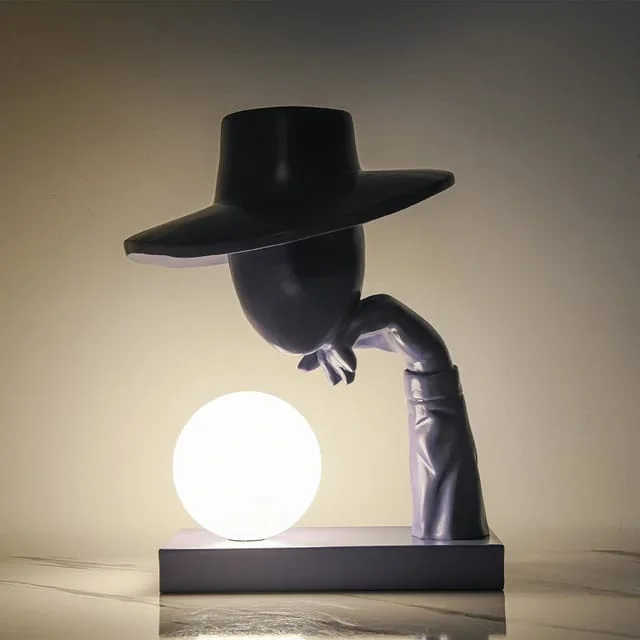 The Mastermind Table Lamp Black Resin Sculpture Hat Wearing Human Figure Desk Lamp