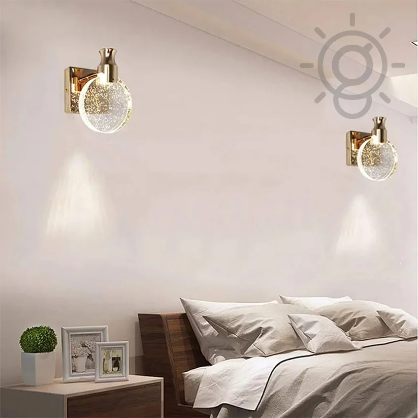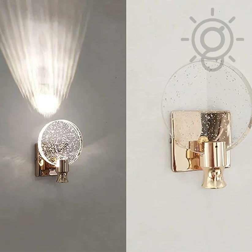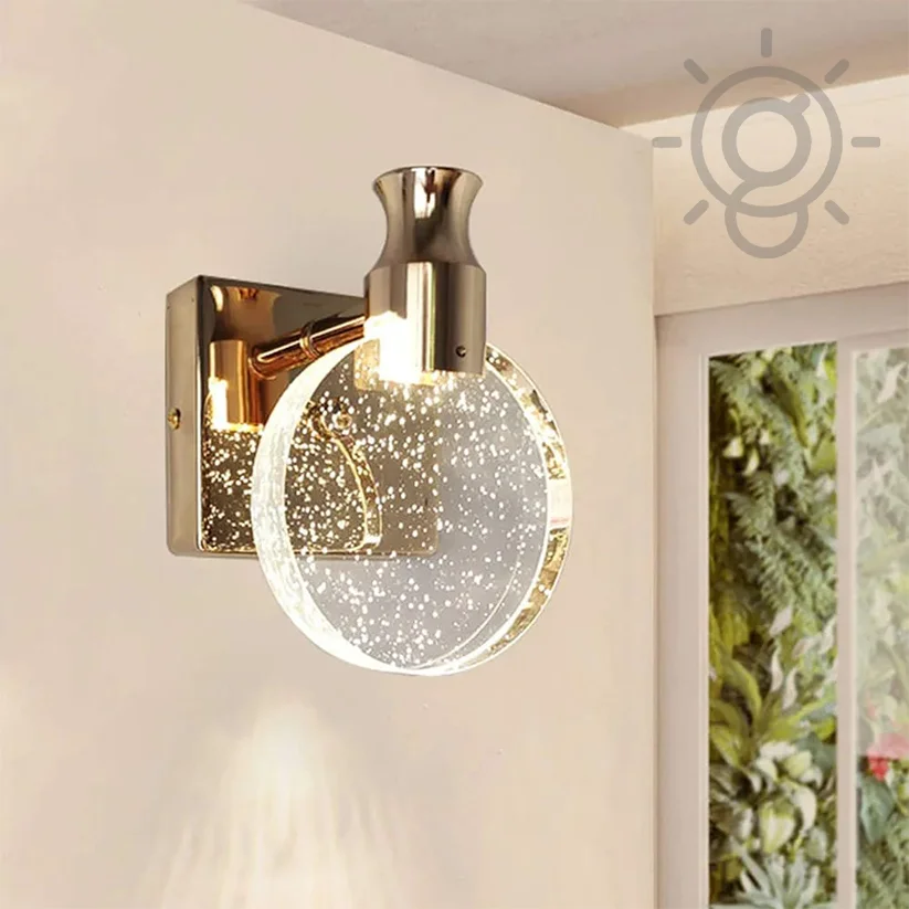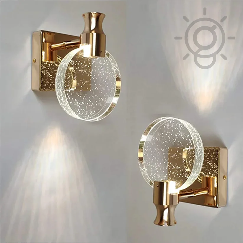 - Illuminate your space with elegance: LED Glass Crystal Round Rose Gold Metal Wall Light.