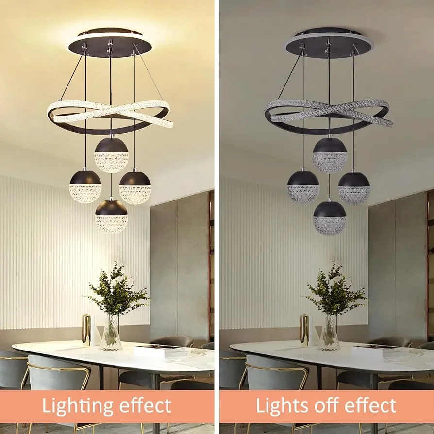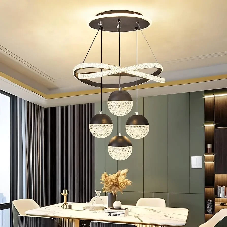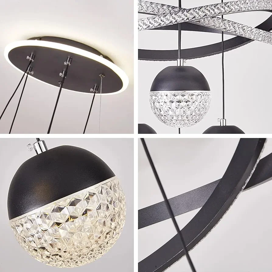 Twisted Curl Pendant Ball Lights Chandelier - Tricolour (Black)