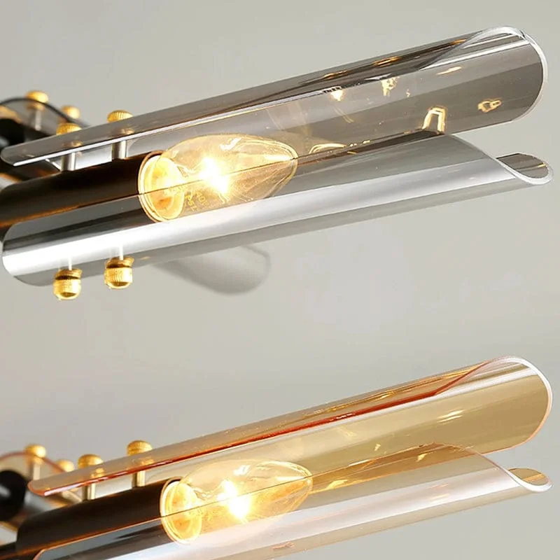 Vintage 8 Heads Linear Bars Chandelier Smoky Glass Lighting - Warm White