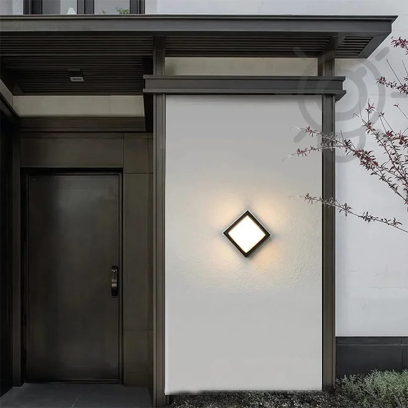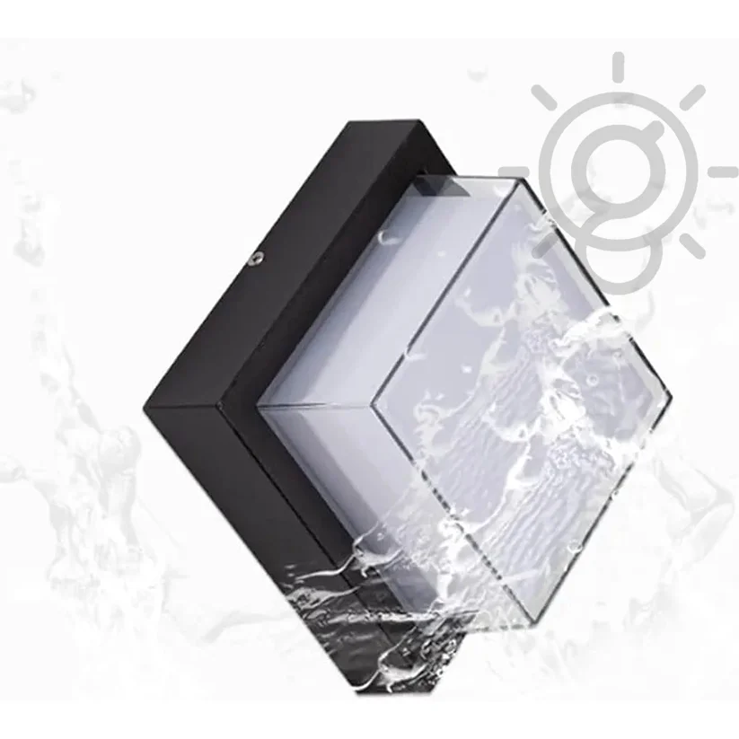Waterproof Wall Lamp Square Acrylic Black LED Outdoor Wall Light 6W Warm White