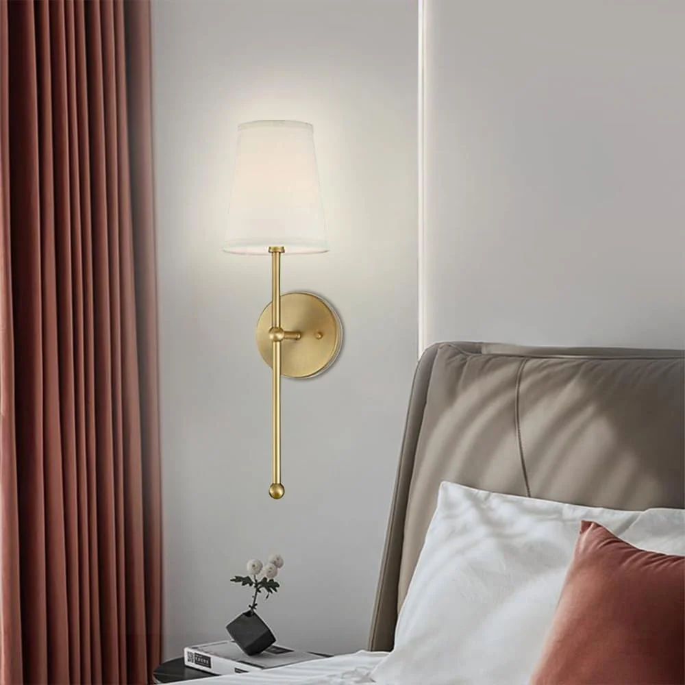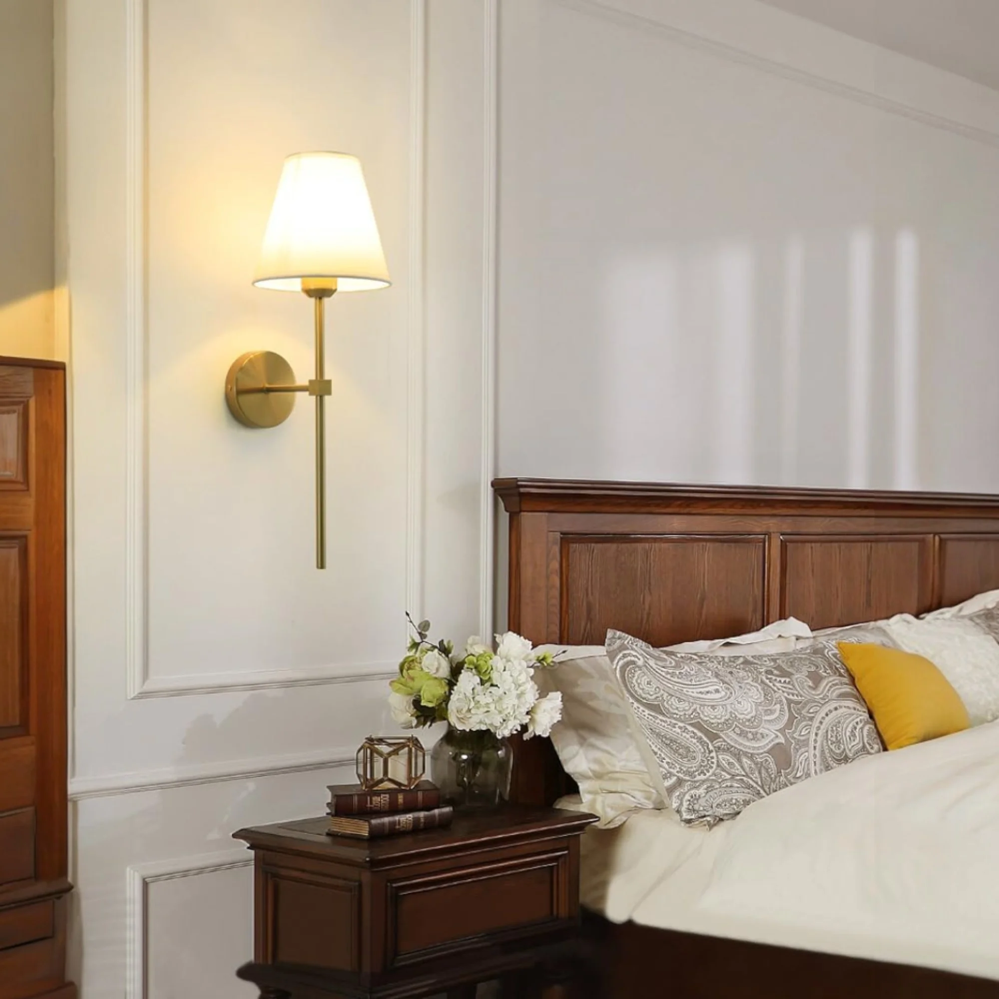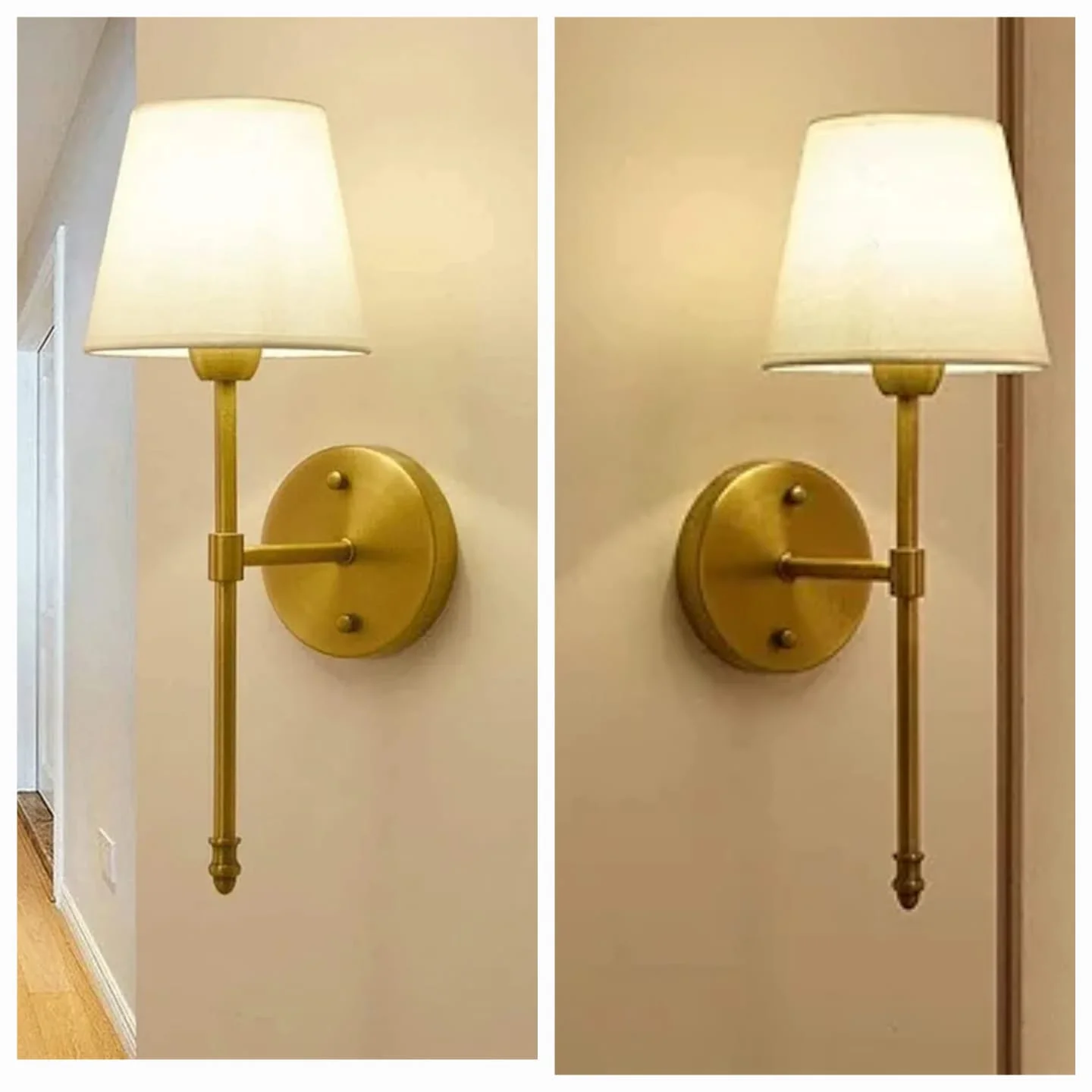 - Stylish Design: Antique Gold Finish Fabric Shade Wall Sconce.