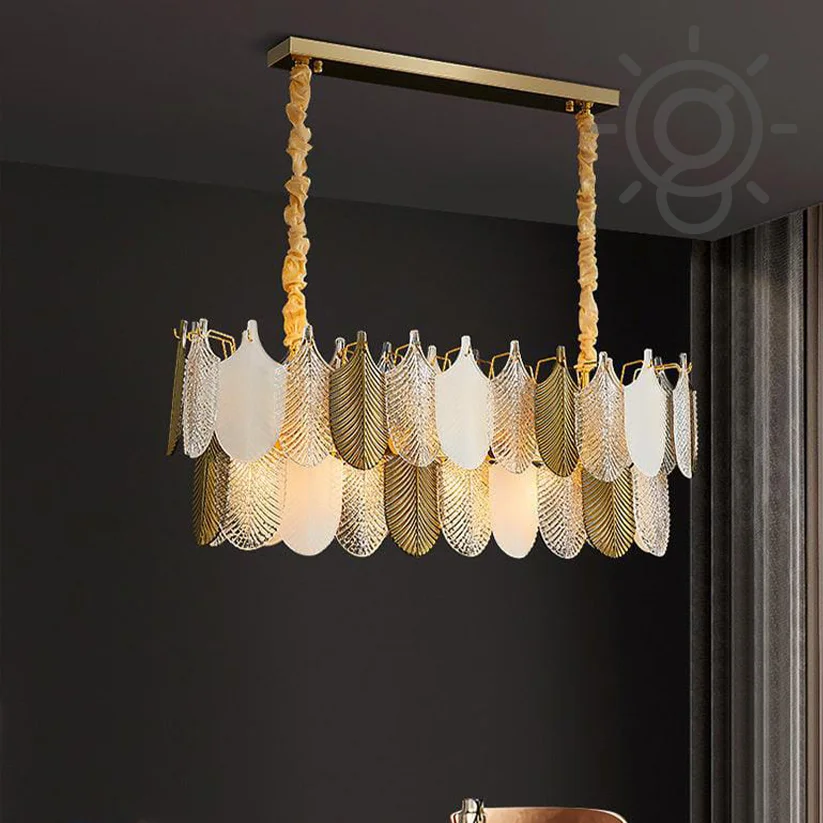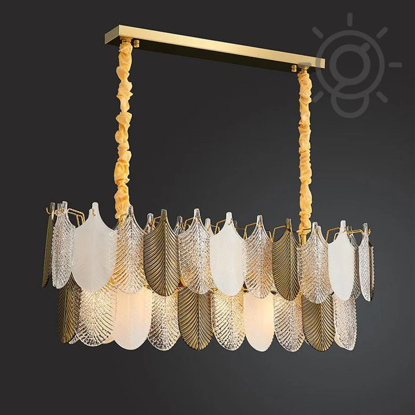 White Golden Clear Glass Rectangular Leaf Chandelier - Warm White