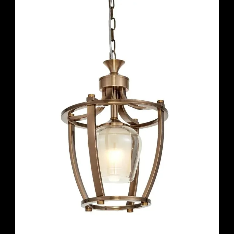 William Pendant Lamp Gold Brass Finish Amber Glass Hanging Light- Warm White
