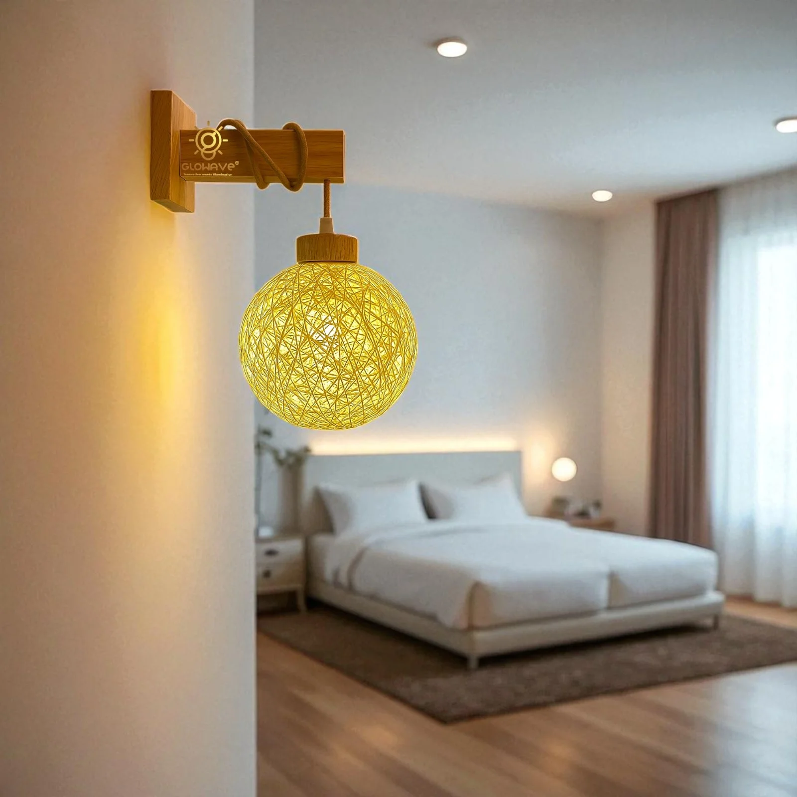 Elevate your living space with the Modern Wooden Ball Sconce Circular Shape Balls Wooden Finish Wall Lamp. This elegant lighting fixture, perfect for your living room, bedroom, or bedside, features a sleek Wooden finish and contemporary balls design.